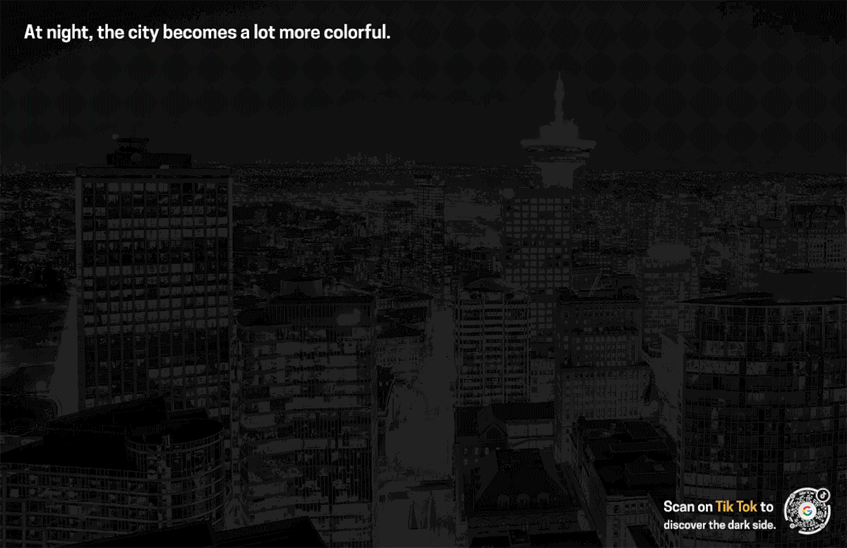 These posters will be completely darkened images of favorite nighttime moments that will only be revealed when you scan the QR code with your phone. This QR code links to a Night Sight filter on Tik Tok that will show how bright and colorful the image would be if it were taken on the Pixel.